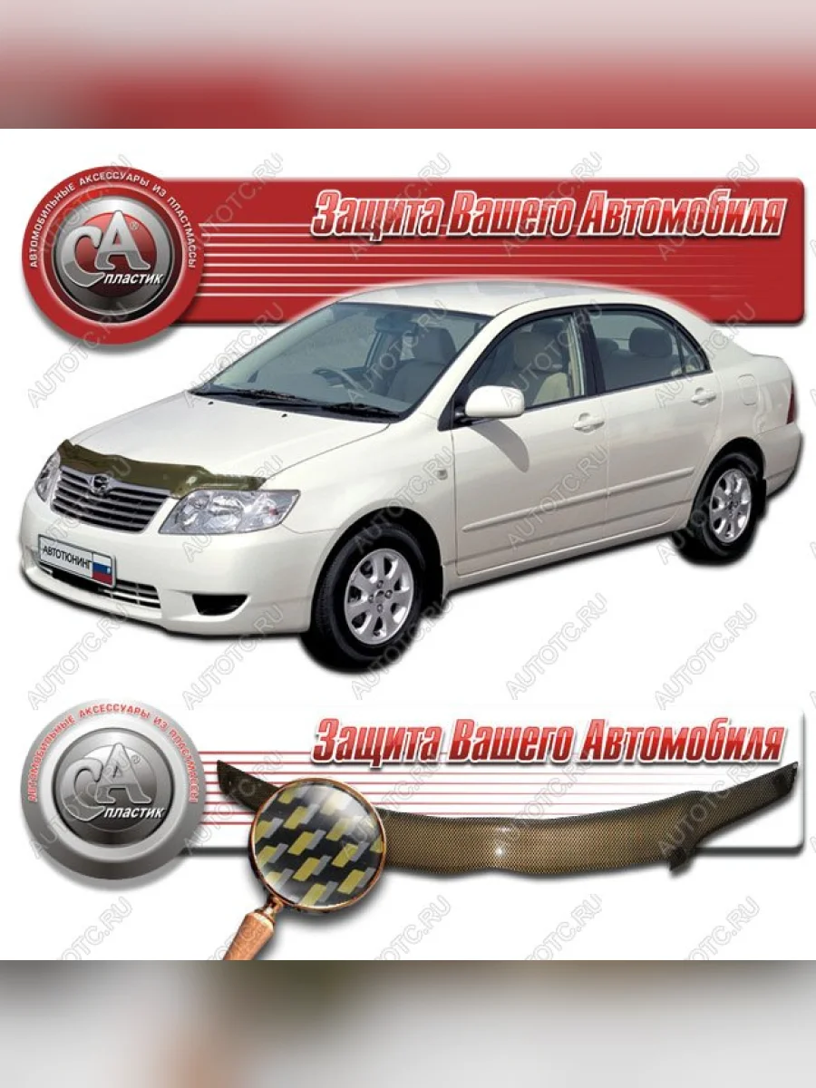 Дефлектор капота CA-Plastiс Toyota Corolla (2004-2007) E120 (серия Шелкография карбон золото) в Вологде Вологодской области