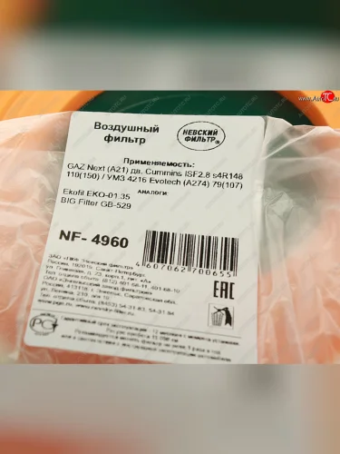 Элемент фильтрующий ГАЗ-3302,ГАЗель Next c 2015г. (дв.CUMMINS) воздушный НЕВСКИЙ ФИЛЬТР НЕВСКИЙ ФИЛЬТР nf4960l в Вологде Вологодской области