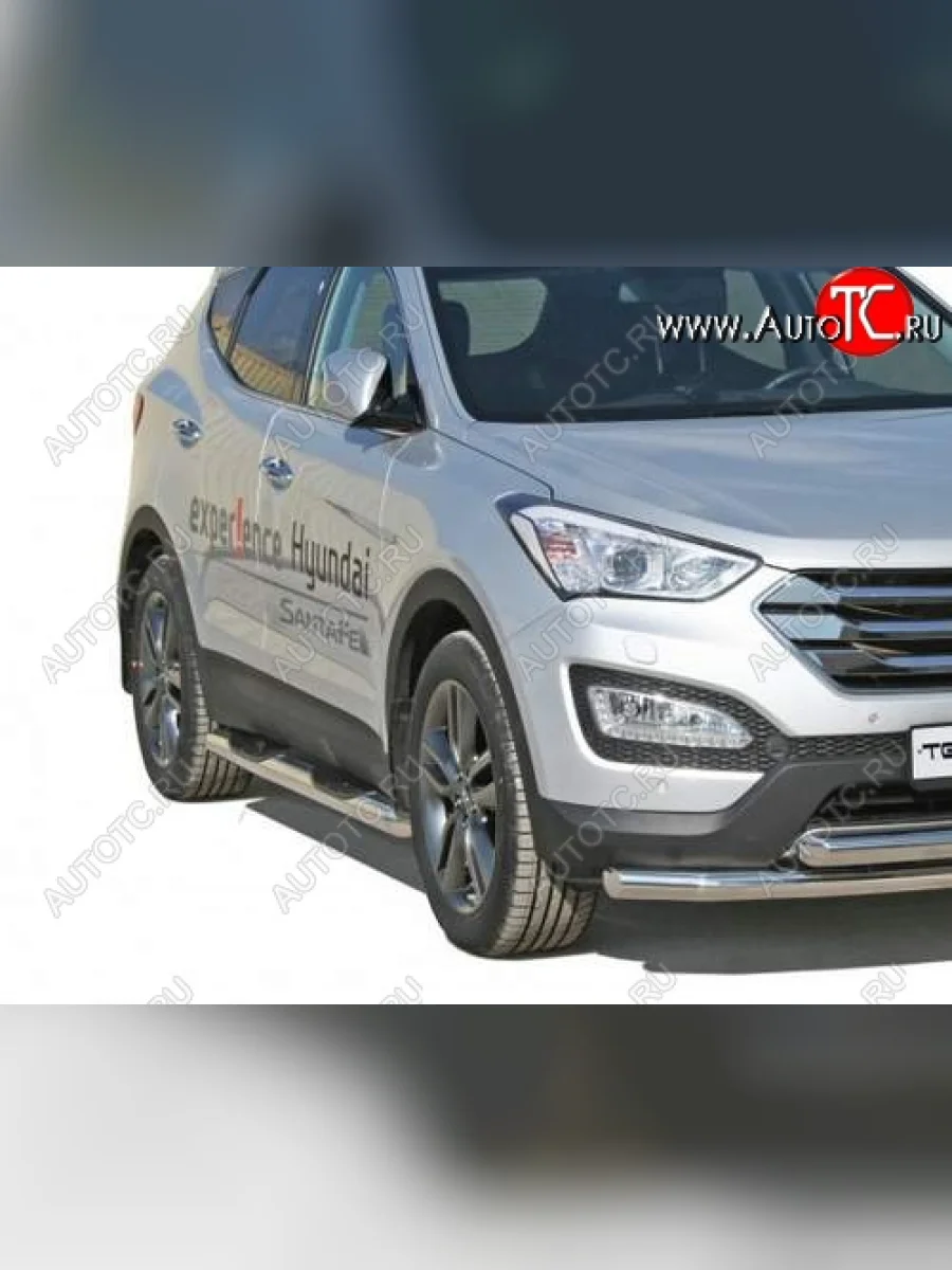 Защита порогов ТехноСфера (Техно Сфера) (нержавейка, с проступью, d76 mm) Hyundai Santa Fe DM дорестайлинг (2012-2016) в Вологде Вологодской области